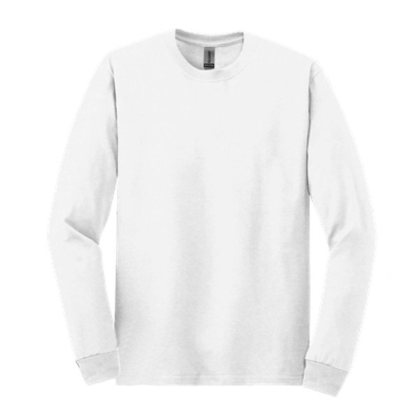 | LONG-SLEEVE TEE | Gildan – Heavy Cotton – White – 8.8oz 100% CottonScreen Printed (1-Color) – Left Chest and Full Back |